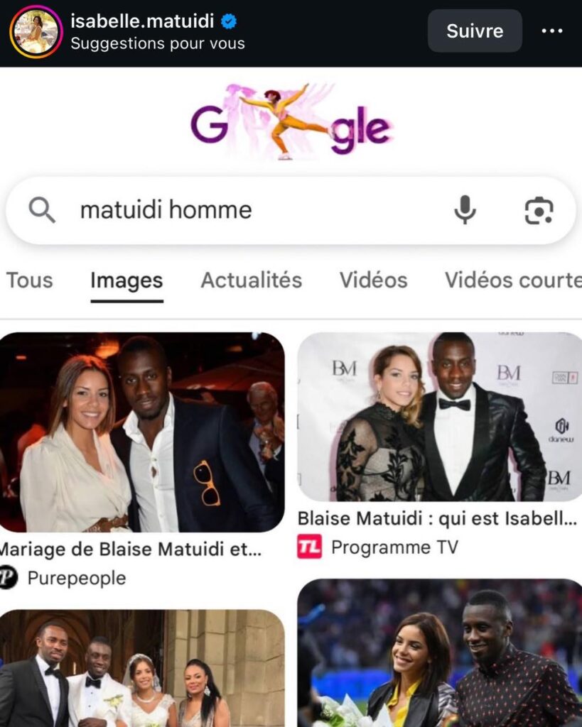 2020 — Il remet le couvert : Il poste une capture d’écran d’une recherche « Matuidi famille » en écrivant « Bonne Saint-Valentin aux amours de ma vie ».